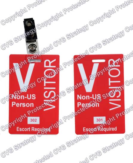 Using professional an Non U.S. ITAR Badge for your guests will help you maintain your site security while having a professional experience for your visitors. Many companies will use Office Depot still stickers to identify visitors, and although this works it is not the same as using a professional-grade Non U.S. ITAR Badge from CVG Strategy.